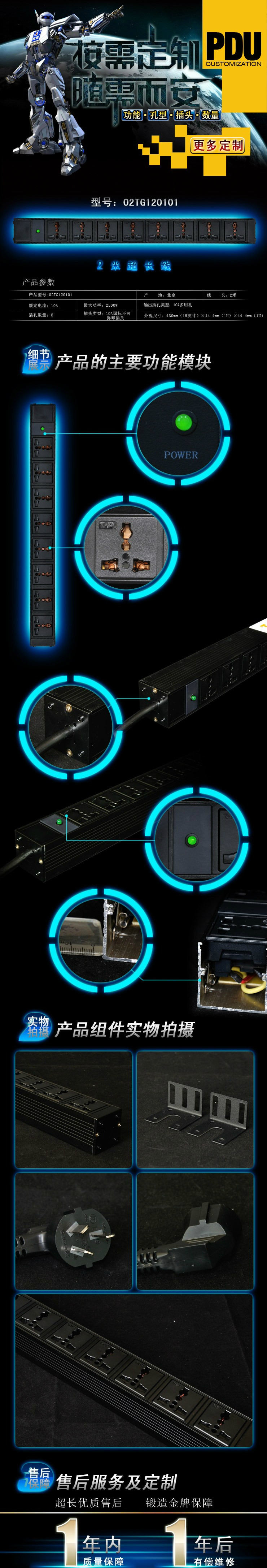 02TG120101安推PDU 8位10A國際(多用)插孔 電源指示燈 19英寸標(biāo)準(zhǔn)長度 10A不可拆線插頭 1.0平方線 線長2米